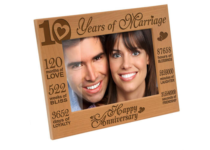 8958 People love thisIf youre looking for a traditional 10-year anniversary gift for him or her, this wooden frame made of top-quality wood is the perfect choice for you. Just frame your favorite photo together and surprise your spouse for your marriage anniversary with something simple but cute and thoughtful.