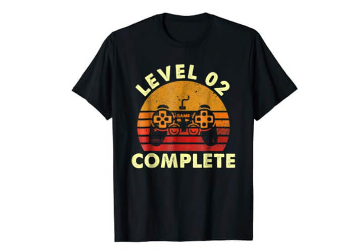 Made of 90% cotton and 10% polyester, this t-shirt makes the best cotton anniversary gift for him because it says: Lever 2 Complete.