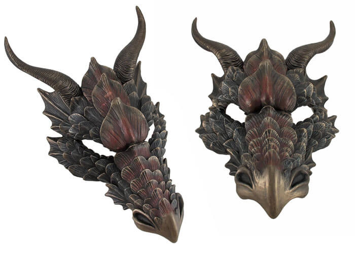 8866 People love thisIf your spouse is a fan of dragons and wall art, he will absolutely adore this dragon wall sculpture. Im talking about an elegant, wonderful, bronze finished dragon mask that he or she can use to decorate their office, studio, workspace, your living room or bedroom and add a medieval accent to your home.