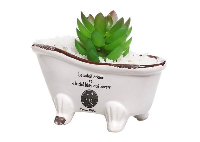 8809 People love thisIf you have a lady friend who loves gardening or if the lady of the house enjoys gardening, then this lovely old French farmhouse bathtub planter is one gift that is sure to warm her heart. The whimsical porcelain bathtub style featuring a classic white décor contrasted with the dark brown rustic script plus weathered lines, makes it unique and cute at the same time.