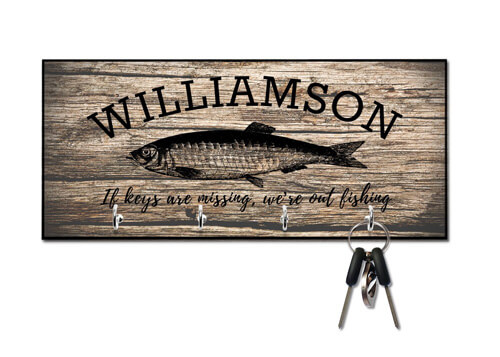 8971 People love thisThis piece of rustic wood key hanger is one of my favorite items when it comes to cool fishing gifts. If you know of a fisherman that cannot keep track of their house keys like yours truly, then this item is perfect for them. I will have my keys in my hand but I will always fumble around the house looking for them when it is time to leave. If they are anything like me, this will ensure they keep their keys safe. It can also be personalized for you. It has four hooks.
