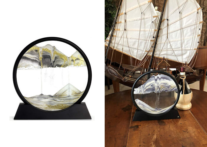 With each turn, youll get a new sand picture. You can watch the formation of dunes, valleys, and mountains right before your eyes.