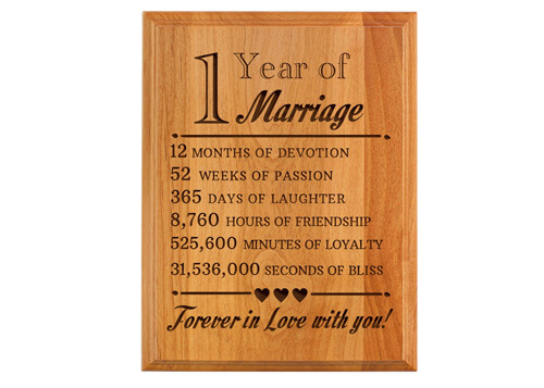 8761 People love thisEngraved wood wall hangings make incredibly romantic anniversary gifts. The two of you can hang it anywhere you’d like to make any room feel romantic, rustic, and homey. She’ll be reminded every time she sees it how touched she was by this lovely gesture, and be falling in love with you all over again.