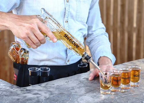 8864 People love thisYour friends need a party to cheer them out? Well, come to the rescue with this gun decanter. It comes with eight shot glasses for those shots they are all looking forward to. It has two gun decanters, shaped like a gun and a belt holster for that fancy bartender look.