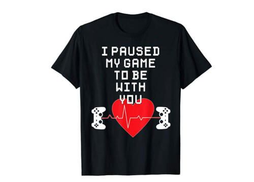 8943 People love thisYou have found yourself an adorable Valentines Day gift for your gaming husband or boyfriend, the search is over. It's an excellent way to show him you appreciate those moments he pauses his games so he can spend some time with you. As a classic fit and lightweight t-shirt, which is also machine washable, its perfect for everyday wear.
